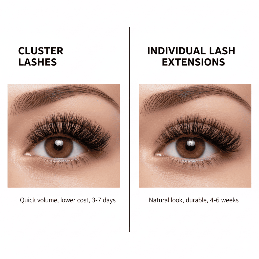 Choosing between cluster lashes and individual extensions can feel overwhelming. Both offer dramatic eye enhancement, but they serve different needs and budgets.