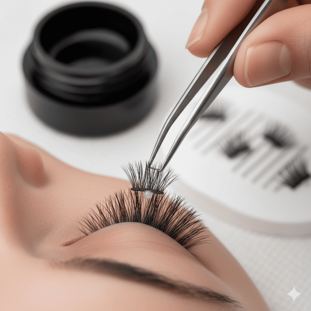 Cluster lashes are multiple synthetic lashes pre-attached at the base, forming a small fan. They’re applied to natural lashes using temporary adhesive and typically last 3-7 days. Each cluster contains 3-10 lashes for instant volume.