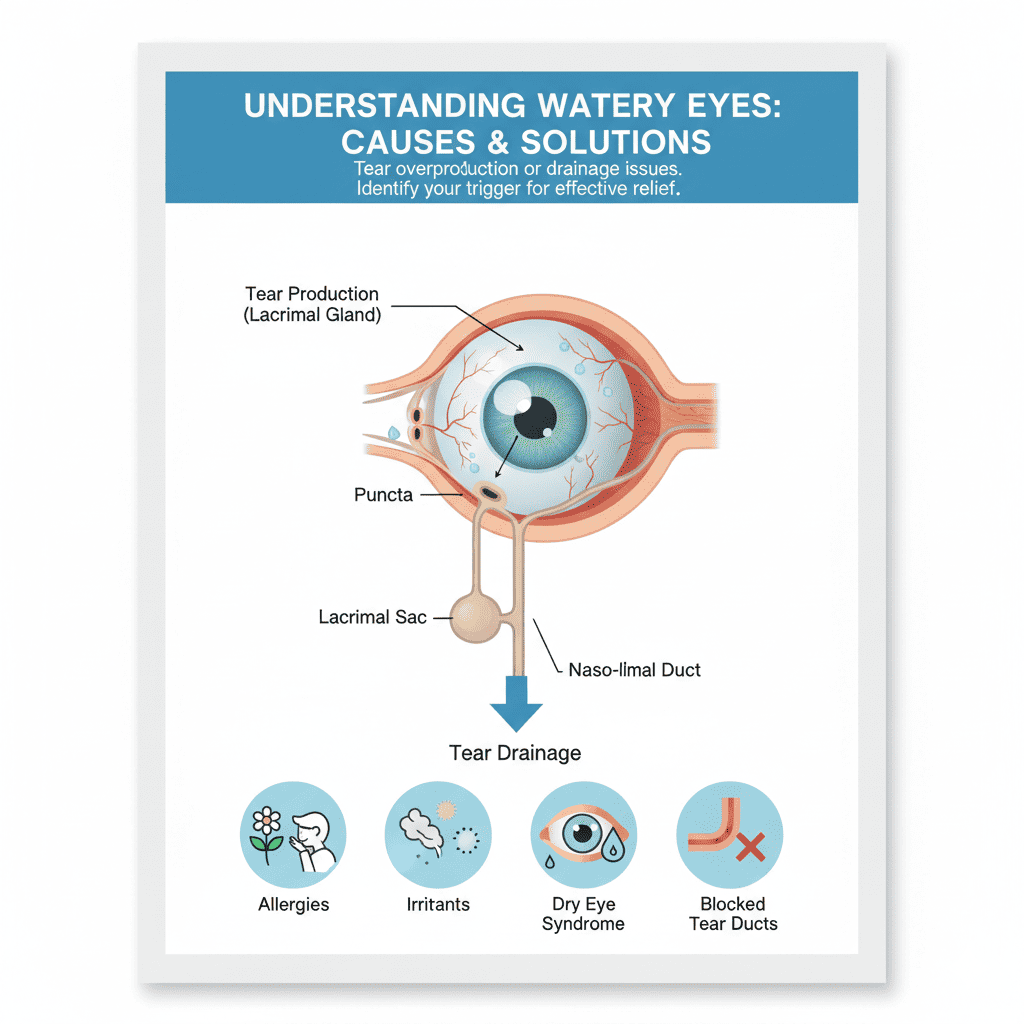 Watery eyes occur when tear production increases or drainage decreases, often due to allergies, irritants, dry eye syndrome, or blocked tear ducts. Identifying your specific trigger helps choose the most effective remedy.