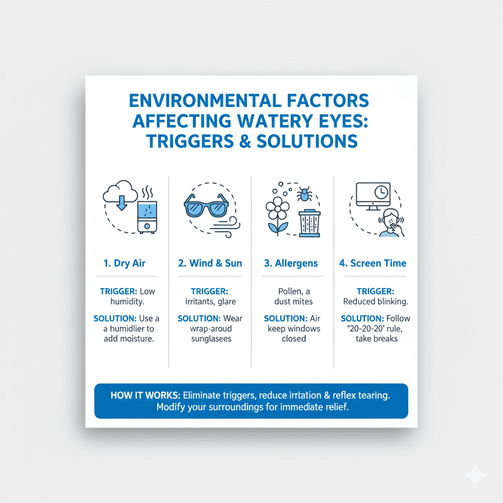Modifying your environment offers immediate relief from watery eyes by removing or reducing exposure to triggers that stimulate excessive tear production.