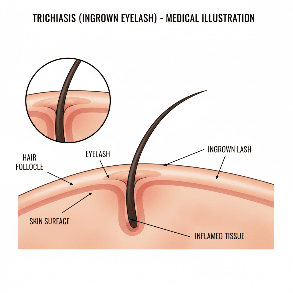 Ingrown eyelashes, medically called trichiasis, create a different set of challenges that require careful management. They’re often mistaken for styes but have distinct characteristics.