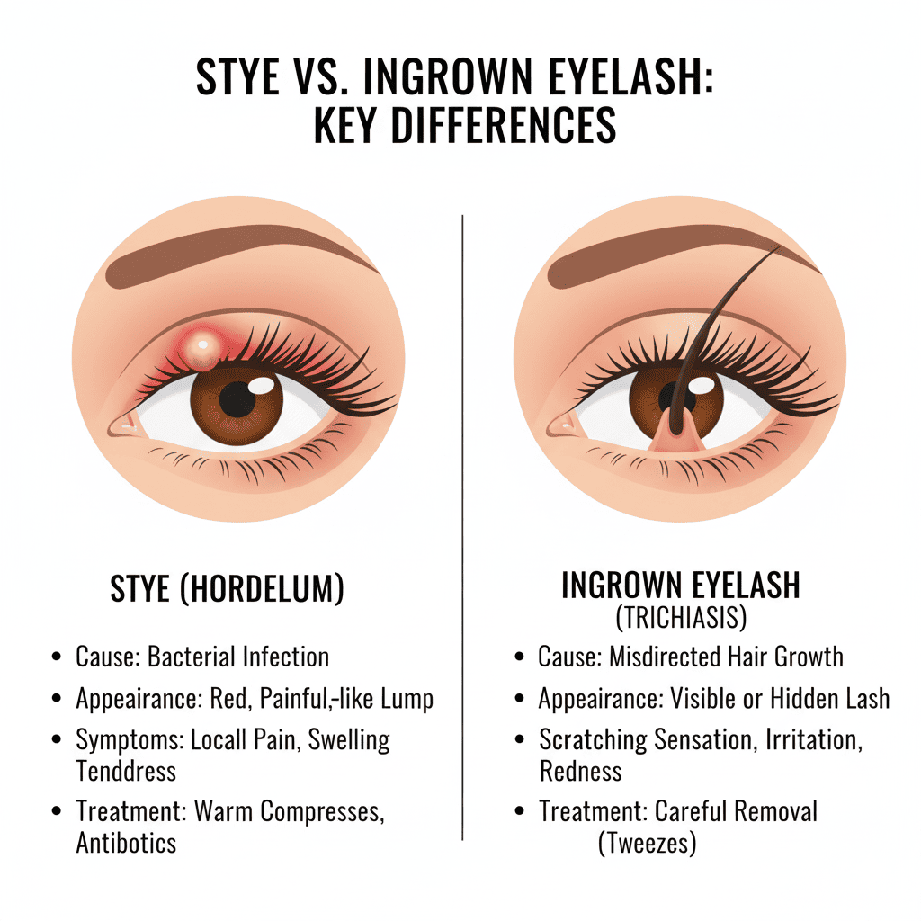 What Are the Key Differences Between Styes and Ingrown Eyelashes?